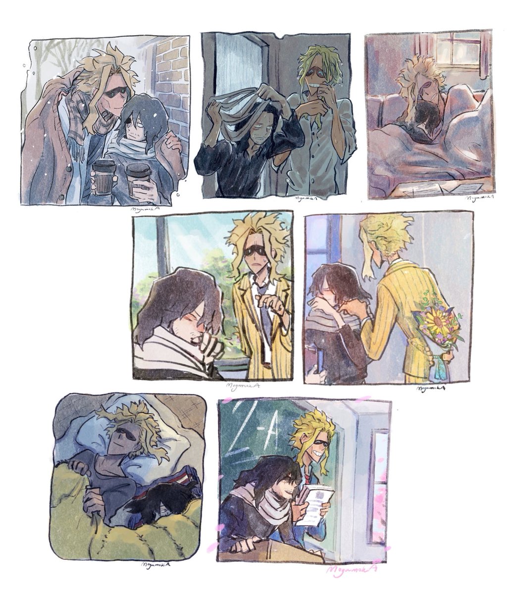 #ErasermightWeek Day 3: Morning Sun “Five more minutes…” “it’s almost 9.” #ShotaAizawa #ToshinoriYagi #MHAFanart #AllMight #Eraserhead #BNHA