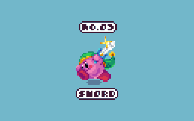 🍑Third day of #30daysofkirby 🗡️Now THIS is a super power, one of my favorites of all time~ Which one is your favorite? #pixelart #pixelartist #pixel_dailies #Kirby #sword #espada