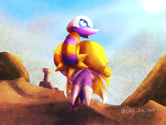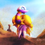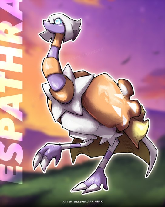 I remember exploring Asado desert and had my jaw dropped seeing #Espathra gracefully walking through the sand 😳 Enjoy this fanart! RTs are much appreciated! 🧡 #PokemonScarletViolet #PokemonArt