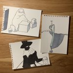 今、数学進行中にEveメドレー聞いてたらちっちゃい紙に描きたくなった🌚(1.2枚目) 過去??中学1.2年に描いた絵(3.4枚目)も出てきたので貼っておきます🥚 #Eveくん好きと繋がりたい #絵描きさんと繋がりたい #Eveくん #ひとつめ様