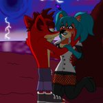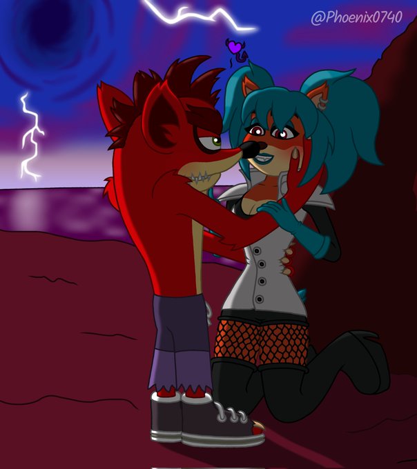 I guess Evil Crash found something better than goth girls, hehe. 😈🧡💙 Evil Megumi's design belongs to @Arsbinbcc. Thanks a lot for letting me use it. 💖 I hope you like it! 🙌 #CrashBandicootFanart #EvilCrash #CrashBandicoot #MegumiBandicoot #CrashGumi