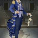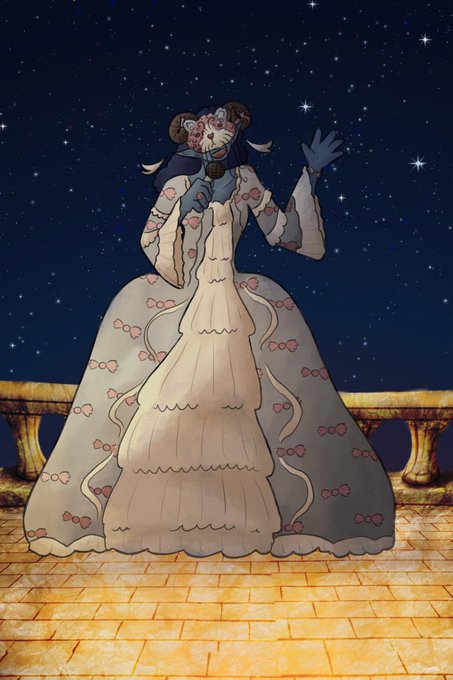 Yeza Brenatto. Father. Husband. Alchemist. King. Arriving at the #ExandrianMasquerade , he is proudly showing off his wife, while sporting fashionable Marrow Valley attire which pays humble homage to his origins, profession, spouse, and friends. 🧪🥼💛🧡 #criticalrolefanart