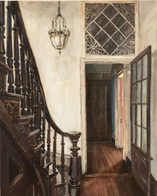 Stairway Interior. Oil on panel. 37 x 32cms. bit.ly/3tg7S4K #oilpainting #interiors #art #artist #exhibition