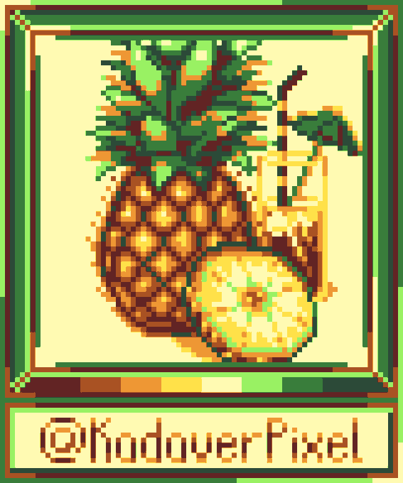 Daily Pixelart, S2 E36 The Painapple is the much more dangerous estermarian cousin of the Pineapple, containing large amounts of a deadly paralyzing poison. 8 Colours. 64px², 80px*96px frame #pixelart #art #pixel_dailies #ExoticFruit @Pixel_Dailies #dndart #dailyart #ドット絵