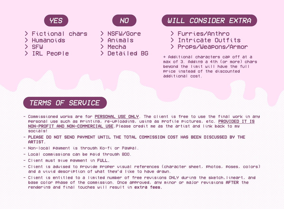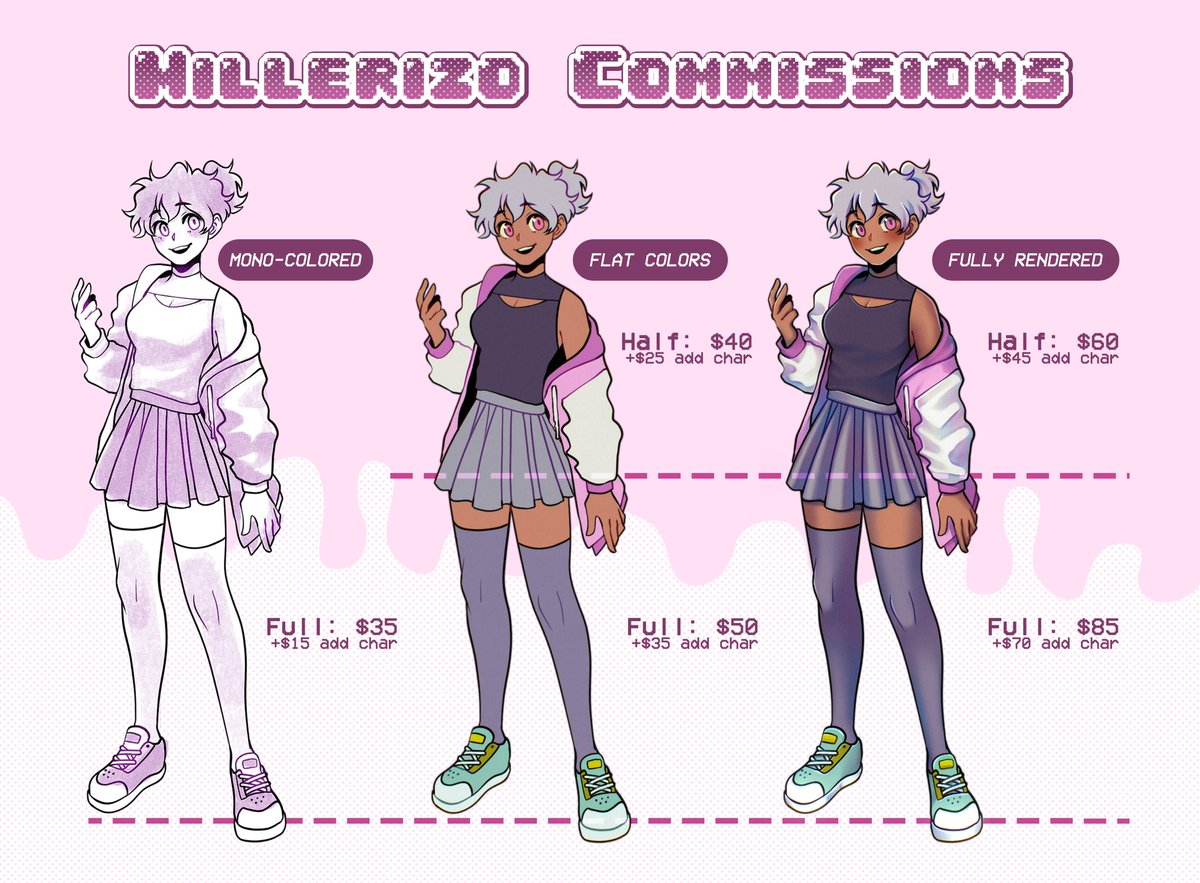 [COMMS OPEN] My updated comms sheet! Hoorah! Email me at millerizo.art@gmail.com to inquire!~ : #commission #commissionsopen #digitalart #commsopen #explorepage #explore #artph #millerizoart