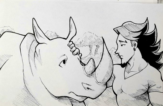 Por mi abundancia de ignoramzia descubri que los rinocerontes blancos machos se extinguieron, esto fue idea de @Leisen_mellow #inktober2021 #Inktober #Extinct #whiterhino
