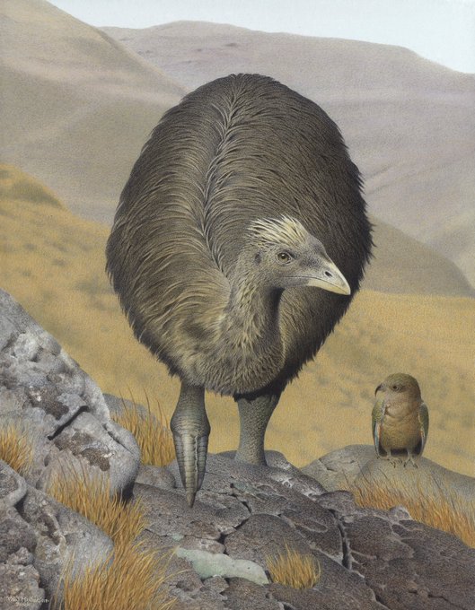 Mantell's moa (Pachyornis geranoides) Extinct 1400AD Watercolour on paper 232x298mm 2005 [This image has a rights statement of © Te Papa CC BY-NC-ND 4.0] #newzealand #nzbirds #extinct #moa #mantellsmoa #ratite #scientificillustration #sciart #paleoart #nature #ornithology