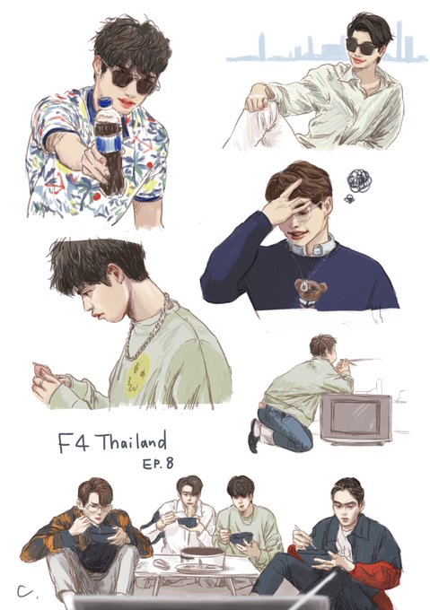 これは描かずにはいられなかった可愛い大賞!!!食べる前は文句言ってたのに一転夢中になってテレビ見ながらラーメン食べてるF4がめちゃくちゃ可愛かった😆💕💕いつもクールなRenが思いっきり頬ばってるのも最高すぎたー💕💕 #F4ThailandEP8 #F4Thailand #F4ThailandFANART