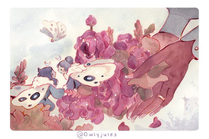 Wisptober Day 6 - Dried "It was quite a surprise for the florist when she found a small moth sleeping in her dried roses one morning. Luckily the moth's beloved was waiting for her in the garden." One more day now!;) #wisptober #illustration #Fairy