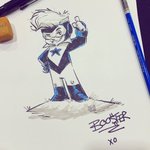 Booster Gold! A fun #commission today at #fanexpovancouver #boostergold #dc #comics #fanart #pentelbrushpen #prismacolor #colerase
