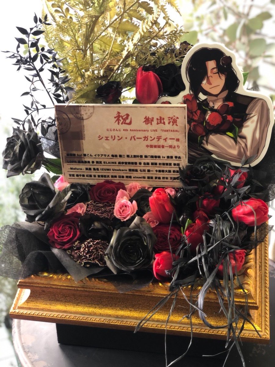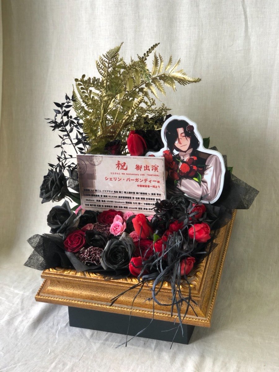 素敵な企画ありがとうございます!  こちらは中国の被疑者一同より、シェリン・バーガンディ様にお贈りする予定の祝い花です。  ライブ中止になってしまって誠に残念ですが、リベンジ公演楽しみにしています!ライバー皆さんが体調がよくなりますように! #FANTASIAコーデ #シェリンの証拠品