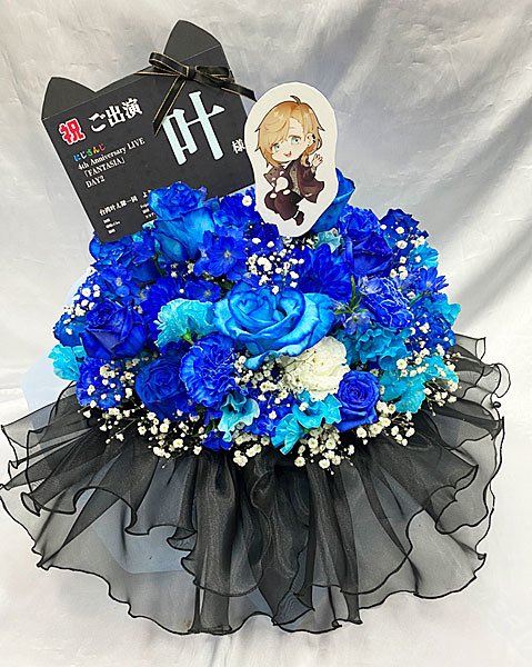 台湾の叶え隊から「にじさんじ4th Anniversary LIVE FANTASIA DAY2」にて叶さんへ贈る予定だった楽屋花です。 紺色をメインにしているのは叶さんの普段着に合わせていて、空色のほうは四周年のステージ衣装に合わせています。 リベンジ公演を待ってます!💪🏻 #かな絵 #FANTASIA祝い花