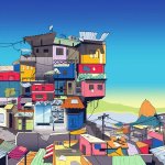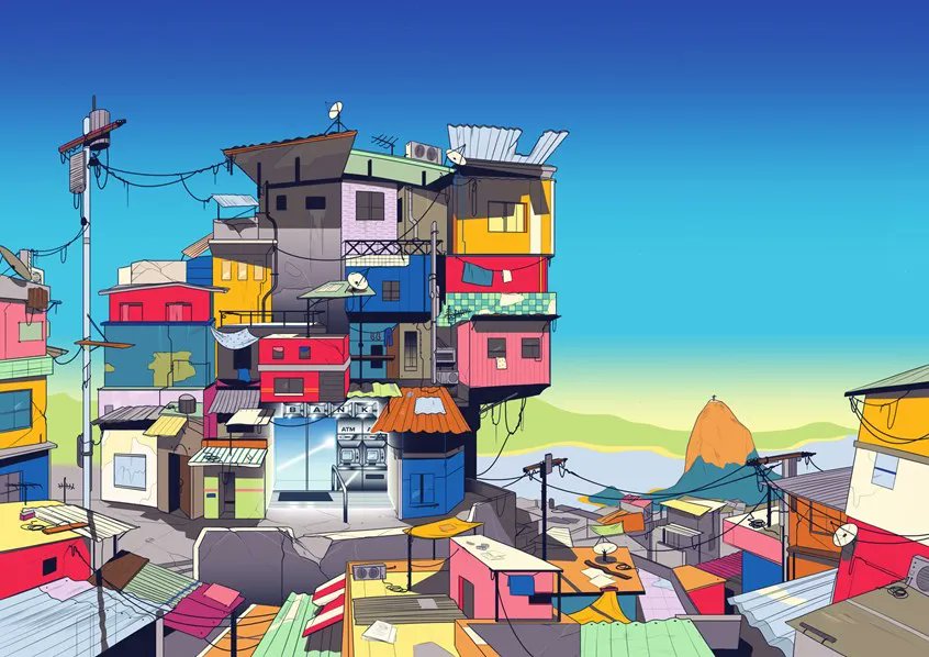 "Banking Favela" by @andrewtarcher, represented by @debutart. Andrew has been an illustrator since 2006 and has worked with an enviable list of the worlds most recognizable brands and publications. Explore more: buff.ly/2mHiFSQ #favela #landscape #urban #digitalartist