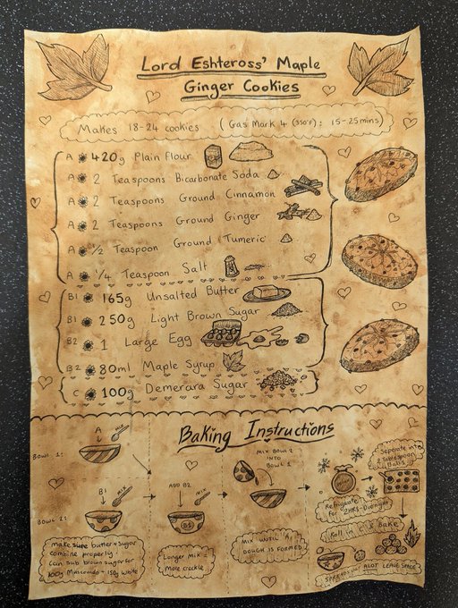First draft of a 'Lord Eshteross Cookies' prop for my upcoming FCG cosplay. Hoping to get some Chef FCG shots with the actual biscuits. 👩🍳🍁🍪 (Recipe from criticalrolebooks.com/cookies , can't wait for the full cookbook!) #criticalrolefanart #fcg #criticalrole #exquisiteexandria