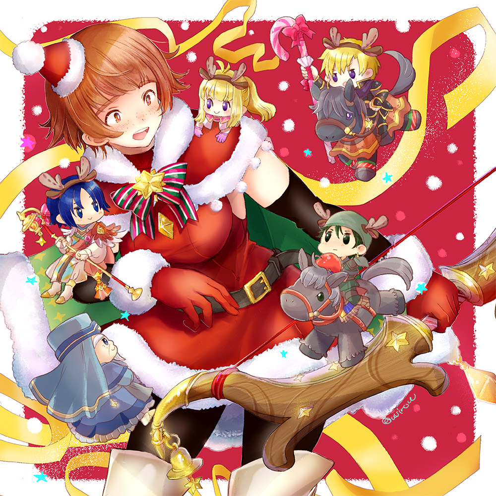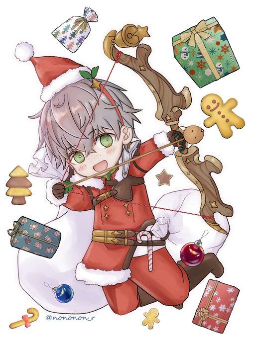 主催者様開催ありがとうございます!!タグ使用させていただきます🙏 烈火封印弓親子を描きました🎅レベッカちゃん達に衣装違い欲しいよ〜!!よろしくお願いします!! #FE聖夜の弓兵さん祭り2021
