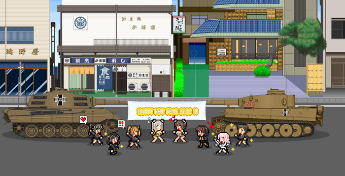 ありきたりなネタですが、寅年という事で即興でティガーⅠとⅡを持ってる黒森峰でお祝い絵を打ってみましたw 今年もよろしくお願いいたします(*´ω`*) #garupan #FF風ドットキャラ