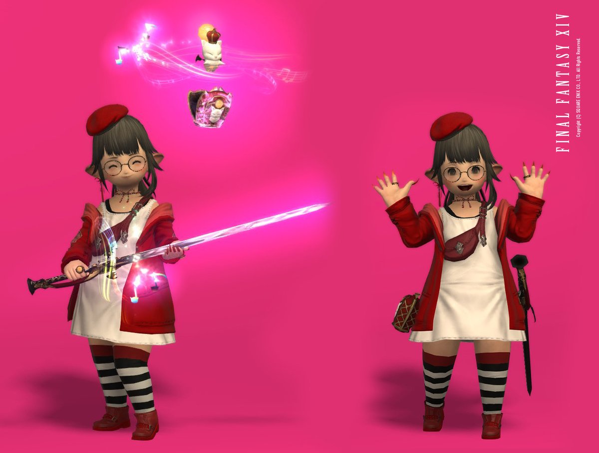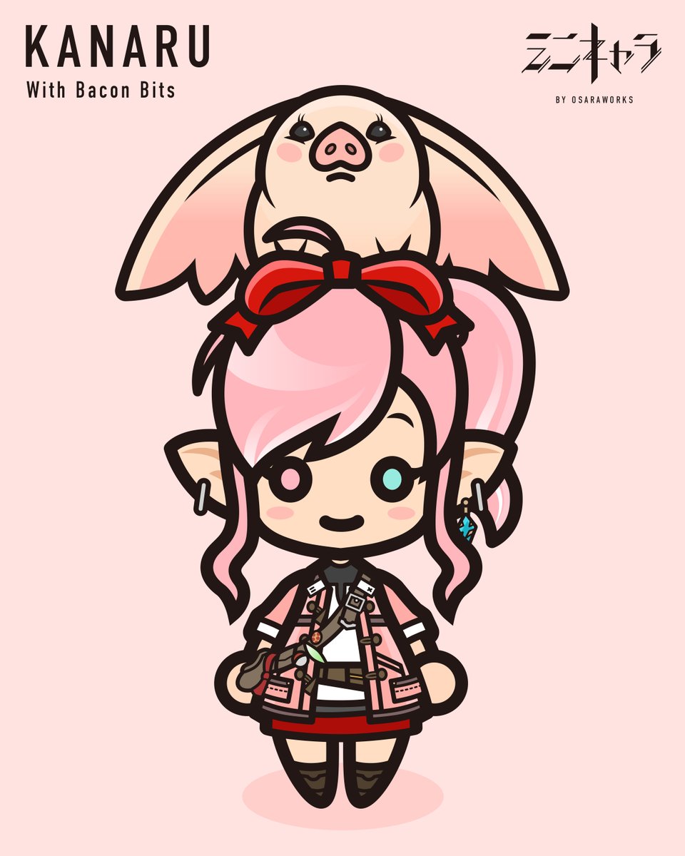 ミニキャラNo220 かなるさん(@kanaru_FFXIV) おしゃれでピンクなララフェルさんっ🤍 ポークシーもめちゃ可愛いっ🐷 ↑ポークシーさん初制作! #osaraworks #FF14 #FF14ミニキャラ #FF14イラスト #FFXIVART