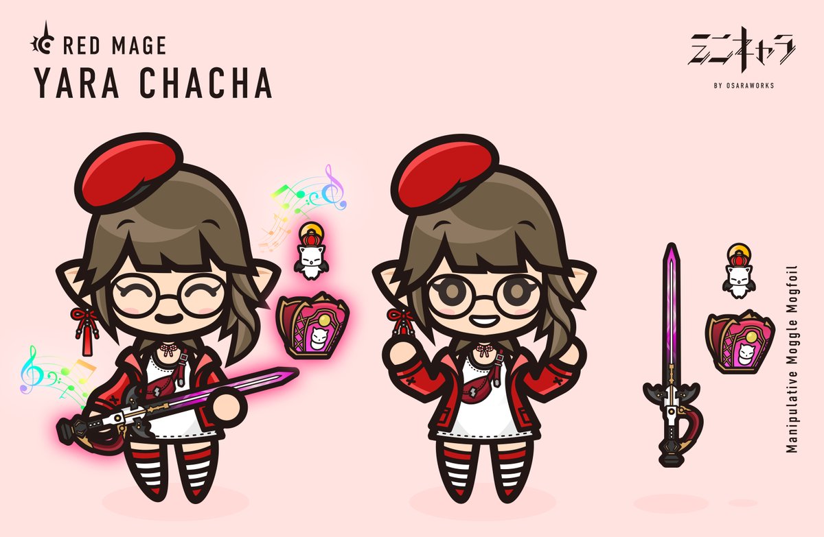 ミニキャラNo226 yarachaさん(@yaracha3) ヴァーシティ帽子メガネっ✨ カジュアルジャケット✨ のお洒落なララフェルさんっ🤍 モグルモグの赤レイピアも可愛いっ🎶 #osaraworks #FF14 #FF14ミニキャラ #FF14イラスト #FFXIVART