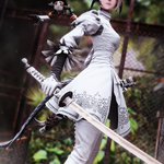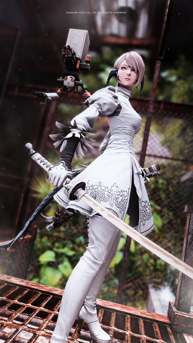 ミニキャラNo225 ヨルハ[2E]さん(@YoRHa_Unit2E) ニーア装備のクールなお侍✨ ピュアホワイトの似合う素敵なアウラさんです🤍 #osaraworks #FF14 #FF14ミニキャラ #FF14イラスト #FFXIVART