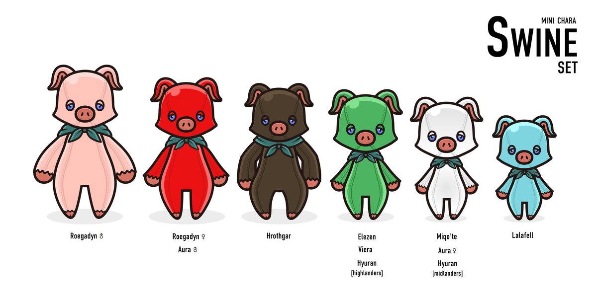 ミニキャラポーキーセット! 各種族別に作ってみましたw アイコンに使いたい人いれば ・種族 ・色指定 ください ※メタリックカラーは未実装 ※背景は(原則)白 ※当選者制作の合間に対応しますので もし多かったら時間かかります💦 #osaraworks #FF14 #FF14ミニキャラ #FF14イラスト #FFXIVART