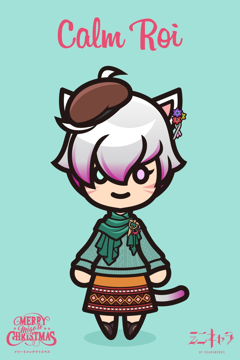 ミニキャラNo229 ロワさん(@CalmRoi) 12月のクリスマスイベントの ミニキャラ当選者🤍 セーターとファーノーザンを着合わせた お洒落なミコッテさん🐈 #osaraworks #FF14 #FF14ミニキャラ #FF14イラスト #FFXIVART