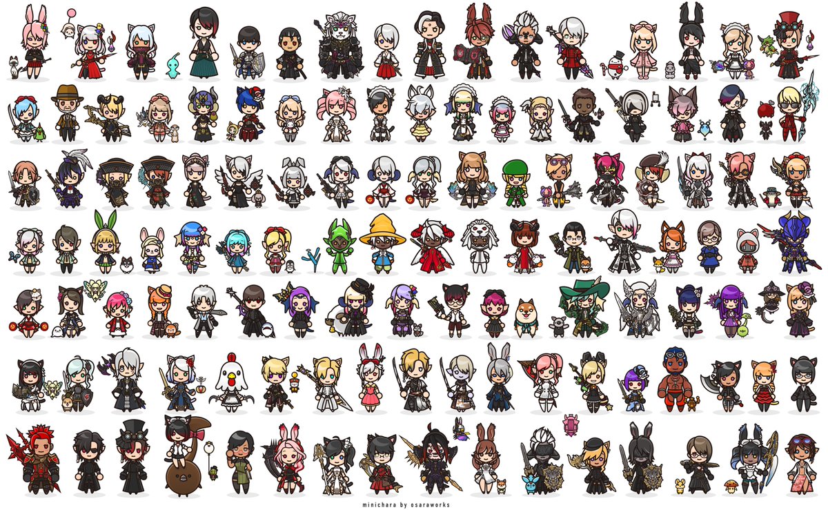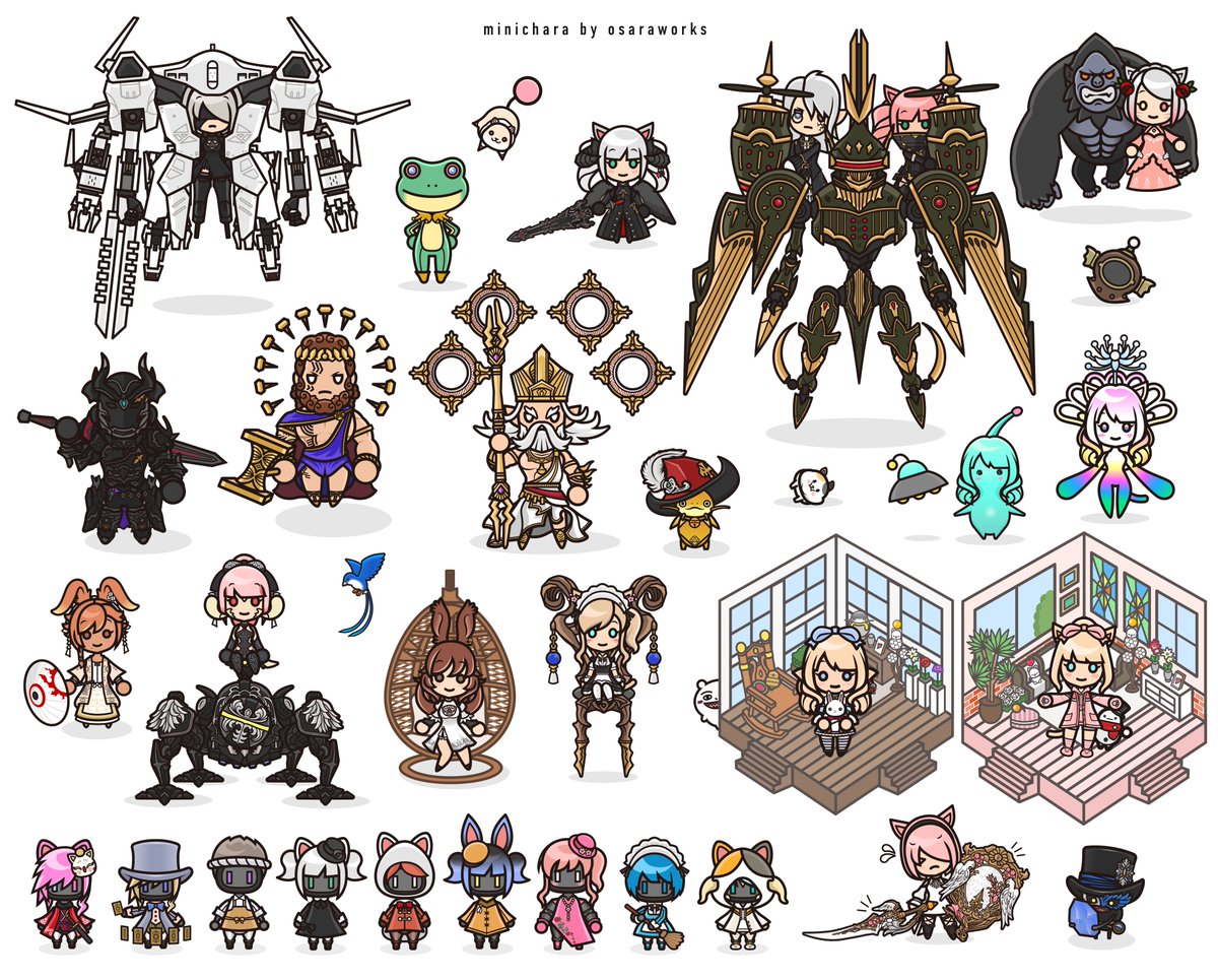 たまにやるミニキャラ総まとめ! まとめるのも大変になってきました! まとめると可愛い🤍💙 ミニキャラ軍団(*•̀ᴗ•́*)و ̑̑ #osaraworks #FF14 #FF14ミニキャラ #FF14イラスト #ffxivart