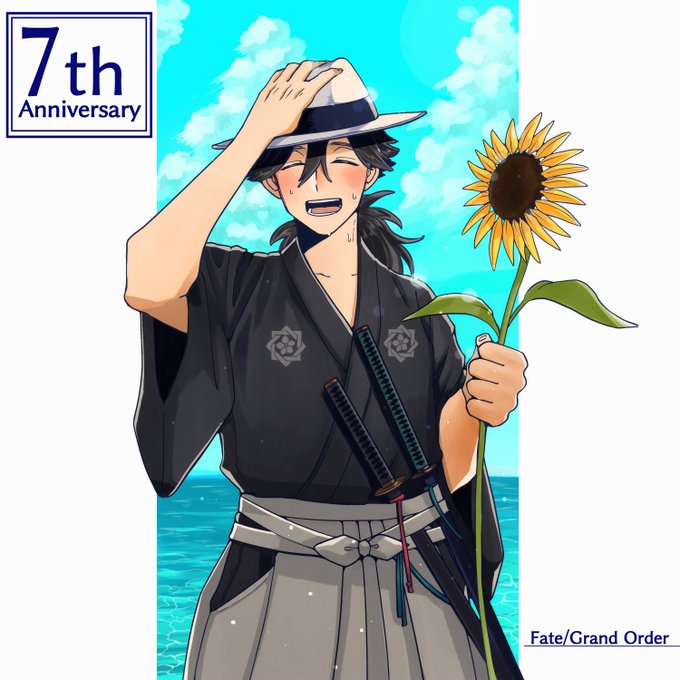 何とか間に合った!メッセージフラッグ投稿しました! 色味を調整した時に天草くんの褐色肌がかなり抜けてしまった(ことに投稿後に気づいた)けどとにかく間に合って良かった…! 7周年おめでとうございます!! #FGO7周年メッセージ #FGO7周年 #FGO