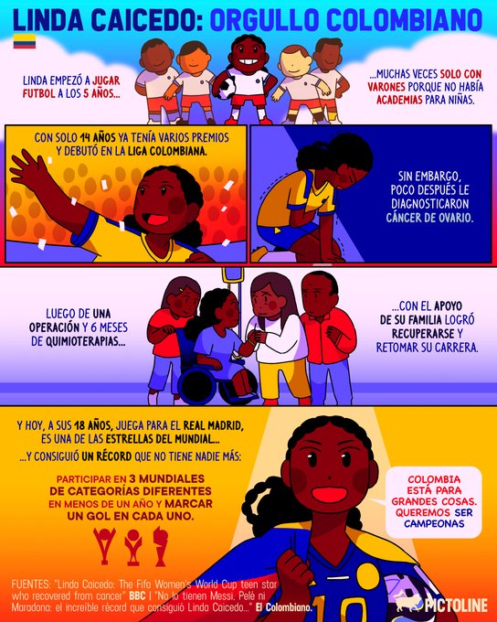 De un diagnóstico de cáncer a ser una de las estrellas ⭐ del #MundialFemenino La historia de Linda Caicedo, 🇨🇴 orgullo colombiano 🇨🇴 #WorldCup2023 #FIFAWWC