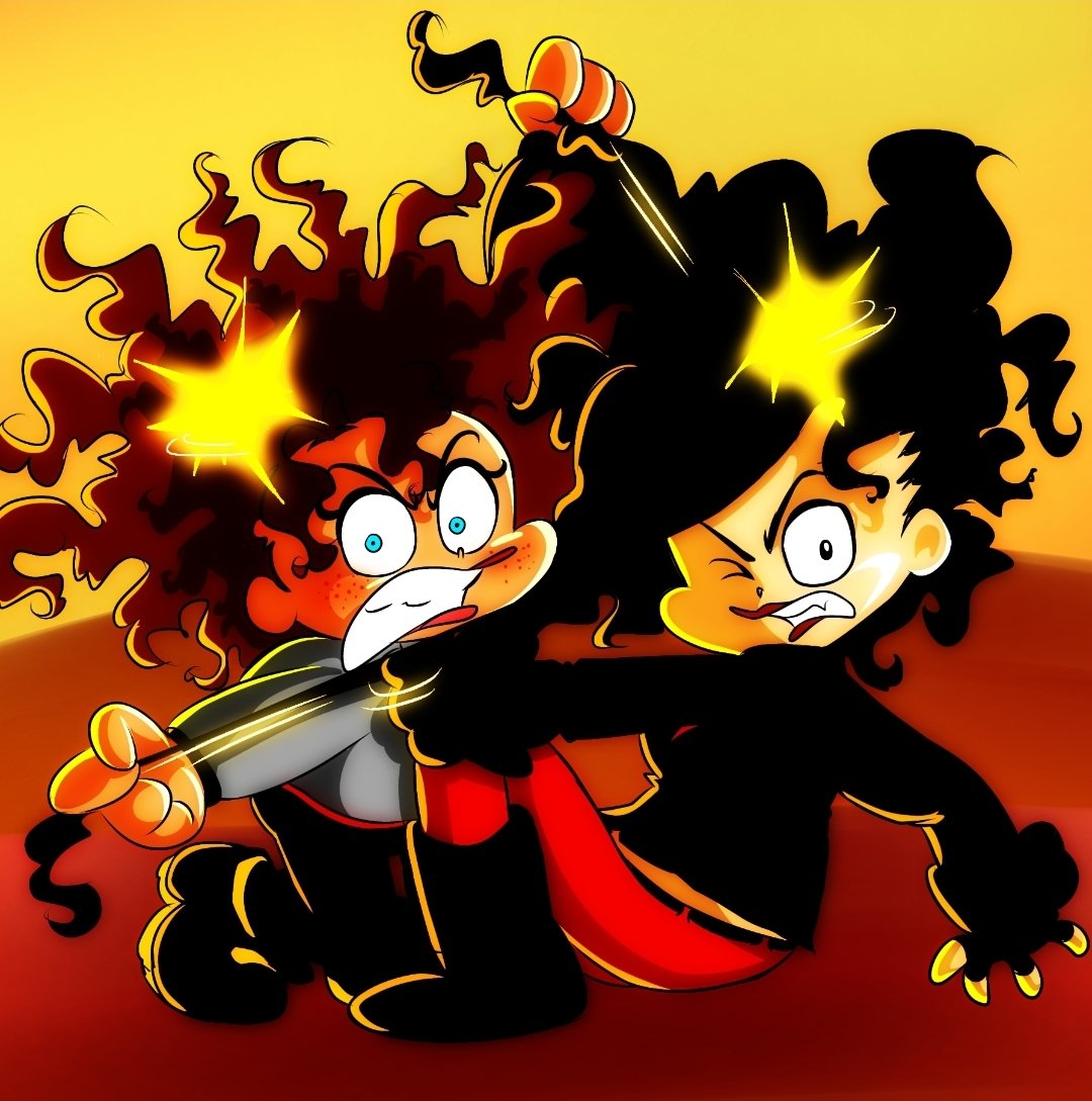Sophia vs Jillian I don't know what these 2 are fighting about 😢 #sisters #sisterfight #battle #curlyhair #originalcharacters #ArtistOnTwitter #digitalart #cartoon #fight