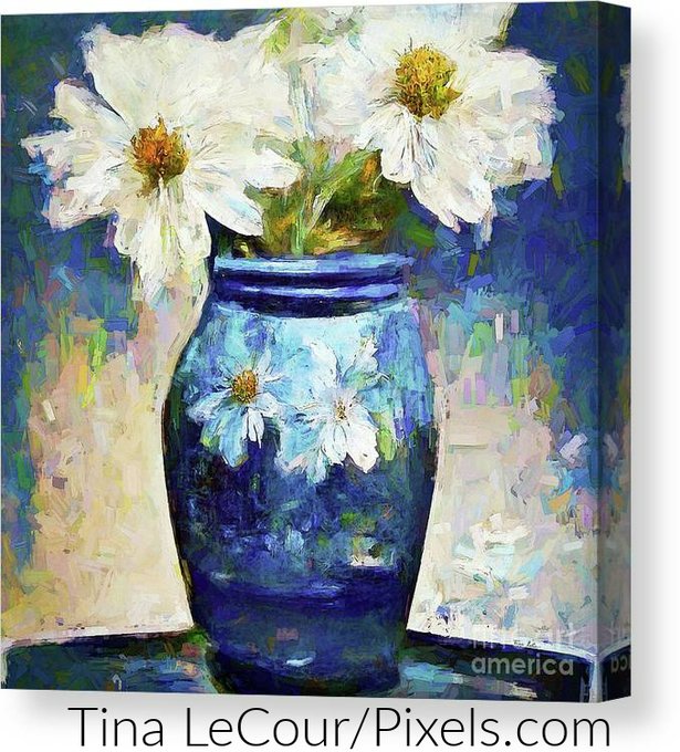 "White Daisies In Blue Vase" has been added to my collection, just click here for a better peek..tina-lecour.pixels.com/featured/white… #BuyIntoArt #FineArtAmerica #FallForArt #floral #painting #homedecorideas #homedecoration #gift #gifts #giftsforher