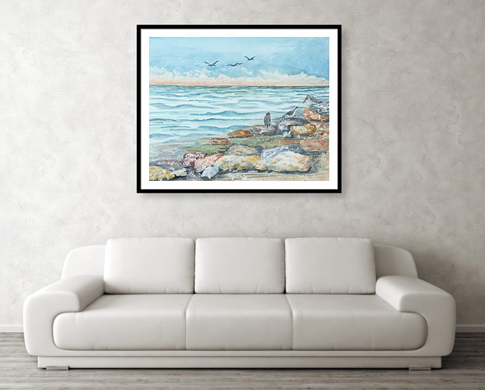 Breakfast on the Beach: Watercolor on Paper #landscapes #birds #beach #ShopEarly #BuyIntoArt #homedecor #Watercolorpainting #fineartamerica Barbara-insalaco.pixels.com