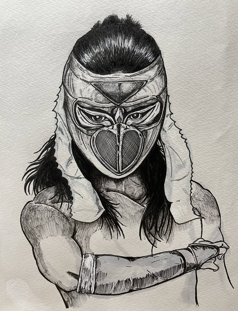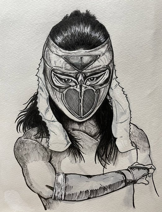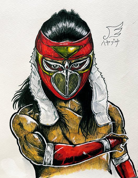 ここまでかけました。 今日完成したかったけど また明日 #ハヤブサ #お楽しみはこれからだ #プロレス #イラスト #制作途中 #アナログイラスト #artwork #copic #drawing #illustraion #wrestling #wrestler #prowrestling #fmw #Pen #portrait