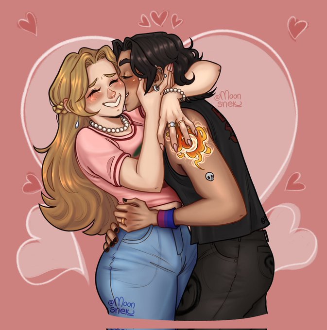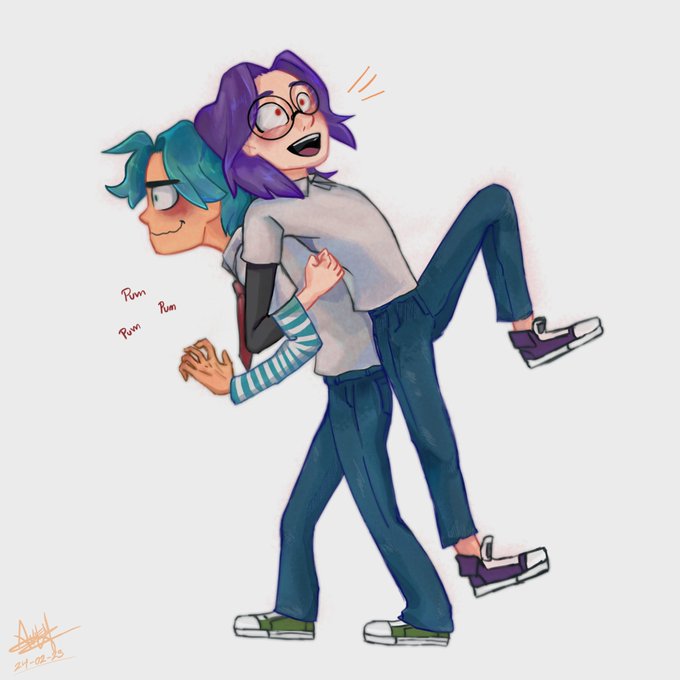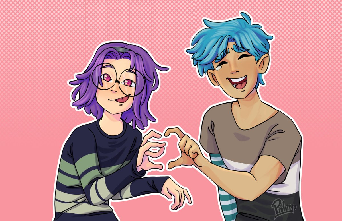Feliz San Valentín!!!❤️❤️💙💜❤️❤️ Tenía muchas ganas de dibujarlos, aunque no estaba segura de cómo jsjs No pues sus ඞ XD, "descuento dos por uno por el día de la AMISTAD" 💜😭 #FNAFHS #BXB #fnafhsfanart