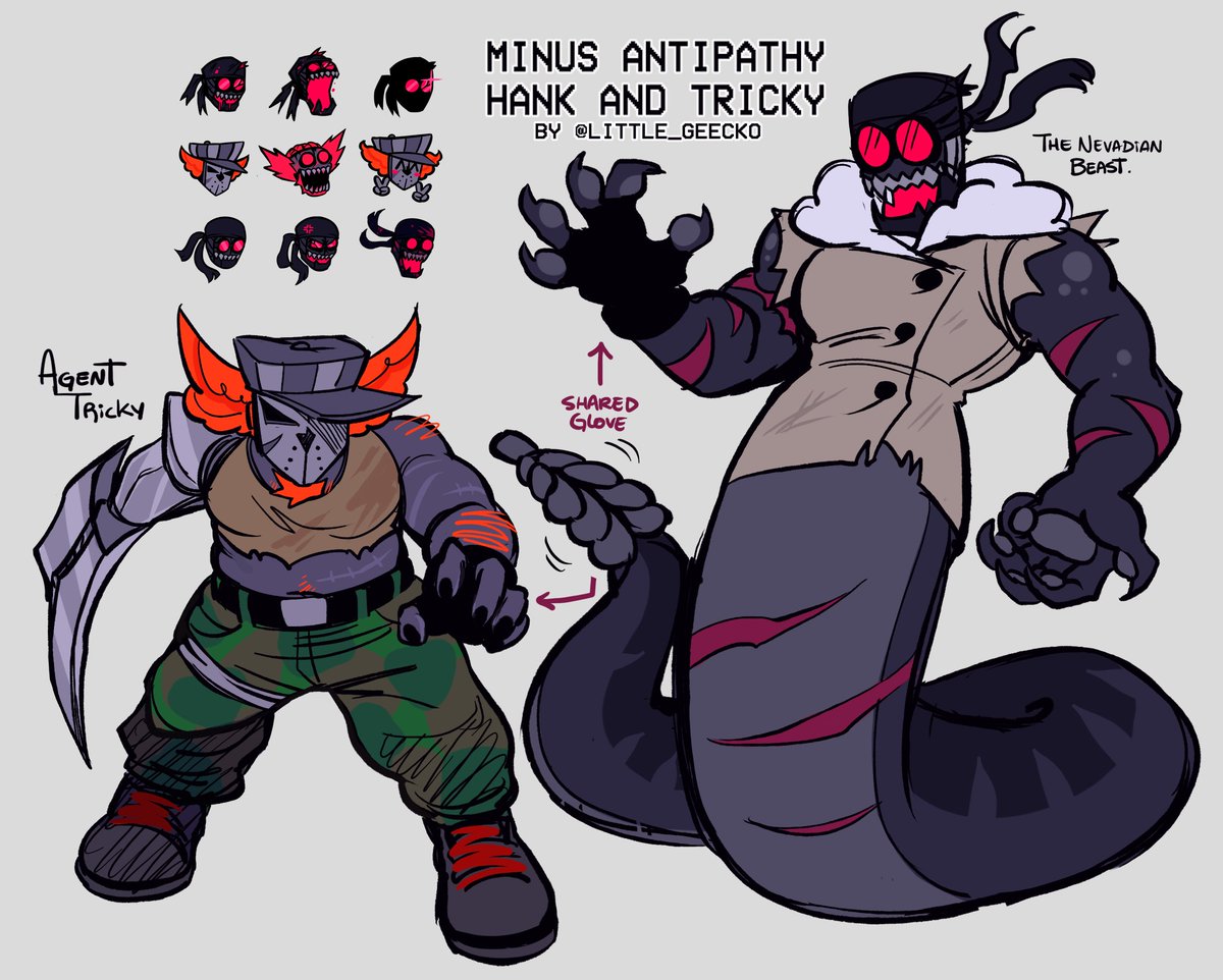 Official MINUS Antipathy Hank and Tricky! #ANTIPATHYSWEEP #fnfantipathy Agent Tricky and The Nevadian Beast; they have story together, the stuff on the Minus AU goes a little different