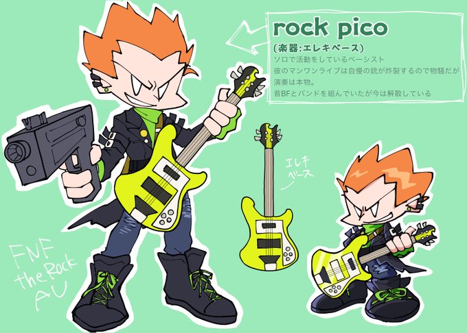 #FNF_theRock_AU Tankmanできた 文章英訳↓ Among the many "tankmen," he is a bit of an oddball, and is such a guitar enthusiast that he brings his guitar with him to the battlefield. He has a large collection of guitars in his parents' house.