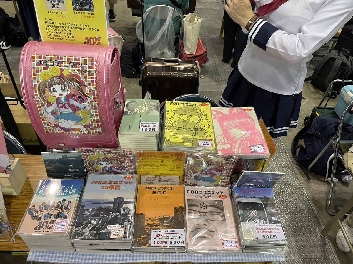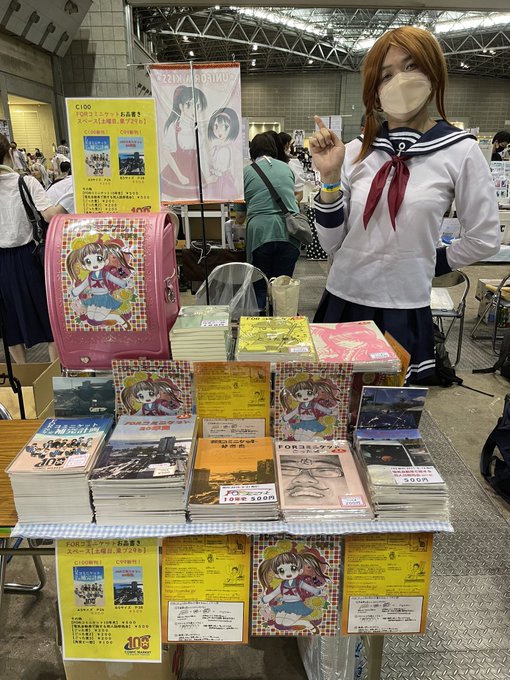 午前中は幹事長(こんちょ)がいます。 12-14は電(艦これ)コスプレの修学旅行実行委員長 兼 三重支部長(梶まほろ) 14-16はフリーでお待ちしています。 #C100 #設営完了 #FORコミニケット twitter.com/forcomi/status…