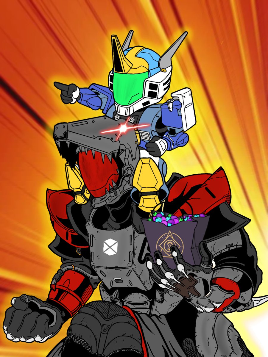 The "Dino-Mech Duo" for #FOTL @DestinyTheGame @A_dmg04 @Cozmo23 @DirtyEffinHippy @TheSamBartley @KobOneArt @rDESTNYCREATION @DestinyGameUK #AOTW #Destiny2Art