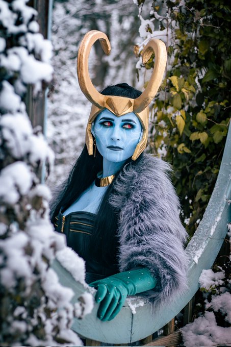 happy #marvelmonday 🥰 we got our first bit of snow for the season yesterday 👀👀👀 ❄❄❄ 📷: @karamelphotos #frostgiantloki #fxmakeup #bodypainting #ladyloki #Cosplay