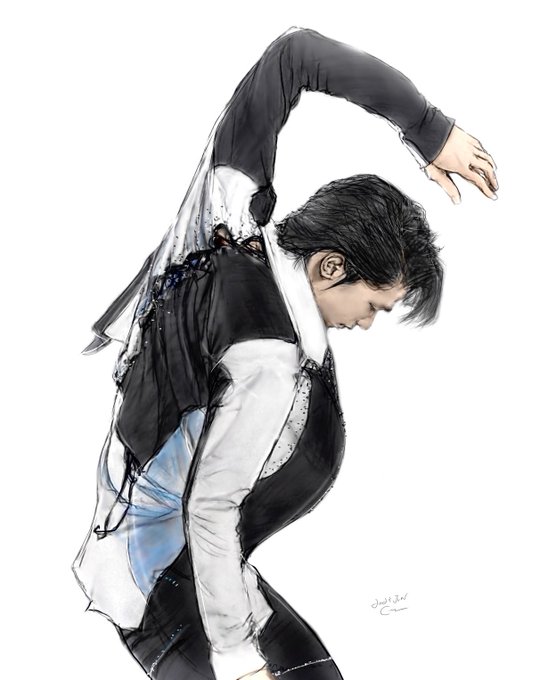 「用意はいいか」 #ダンダンダダン 🎶 今日から #FaOI2023 若杉和希さんのお写真から描かせて頂きました #羽生結弦 #YuzuruHanyu𓃵 #HANYUYUZURU𓃵 #若杉和希 #FaOI2023幕張 #羽生クラスタ絵画部