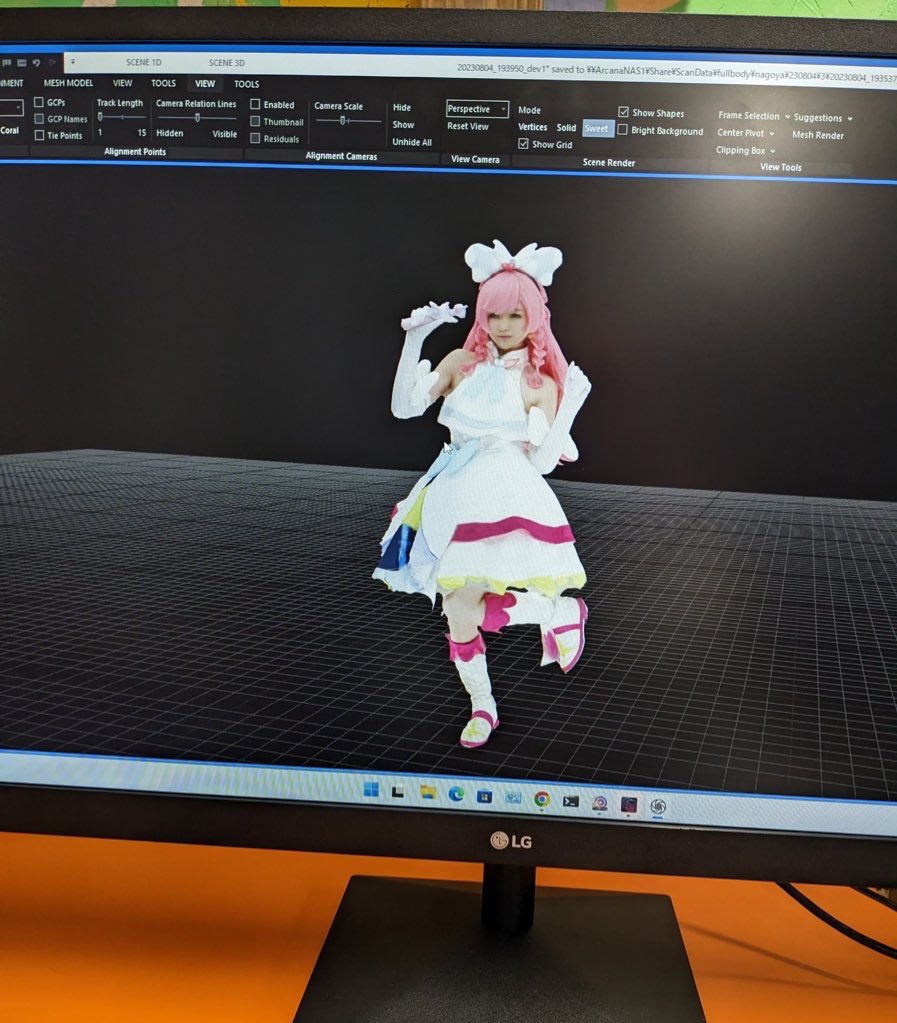今日はコスサミ会場の横でキュアピーチを3D化してもらってきました〜🍑これをフィギュア化してくれるみたいです‼️😳すご😳 土日もやってるみたいなのでコスサミ行かれる方はぜひ❣️ フィギュアたのしみ‥!🙄🍑 #3D_Virtualコスプレイヤー #FacTrans @ArcanaMfg