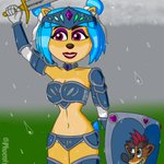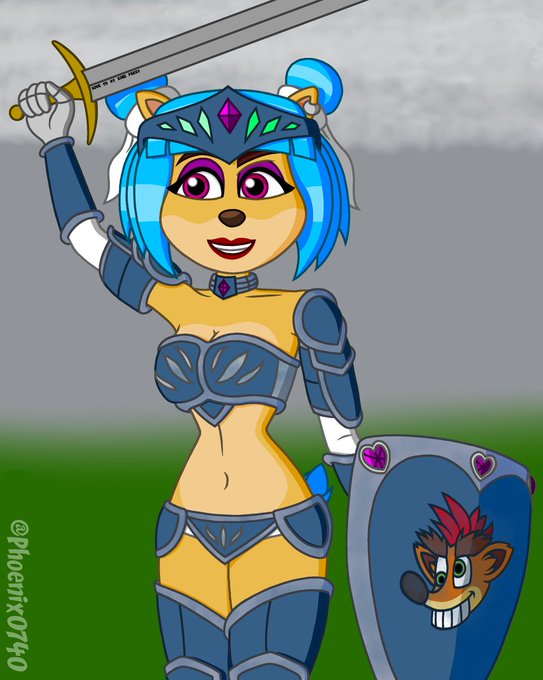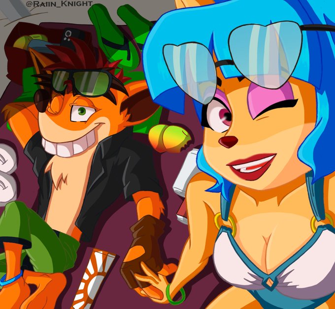 "Hail my king Fake Crash!!" 🗡💙🧡👑 I wish a very Happy Birthday to my pal @Raiin_Knight. Thanks a lot for everything, bro. 🥳🎉🎊 Enjoy this sexy Megumi, defending the honor of her dear doppelgänger. 🗡🌧🥵🔥 #CrashBandicootFanart #MegumiBandicoot #FakeCrash #FakeGumi