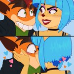 Fake Crash just wanted to kiss her on the cheek, but Megumi took it more seriously...🧡💋💙 #FakeCrash #MegumiBandicoot #CrashBandicootFanart #FakeGumi