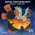 Meet Brawly's Hariyama! Defeating an opposing Pokémon strengthens the Pokémon's bond with its Trainer, and it becomes Brawly - Hariyama. Arm Thrust becomes more powerful and can hit up to 7 times. #fakemon #fakemonart #kensugimoriart #kensugimori #haryama #bondphenomenon