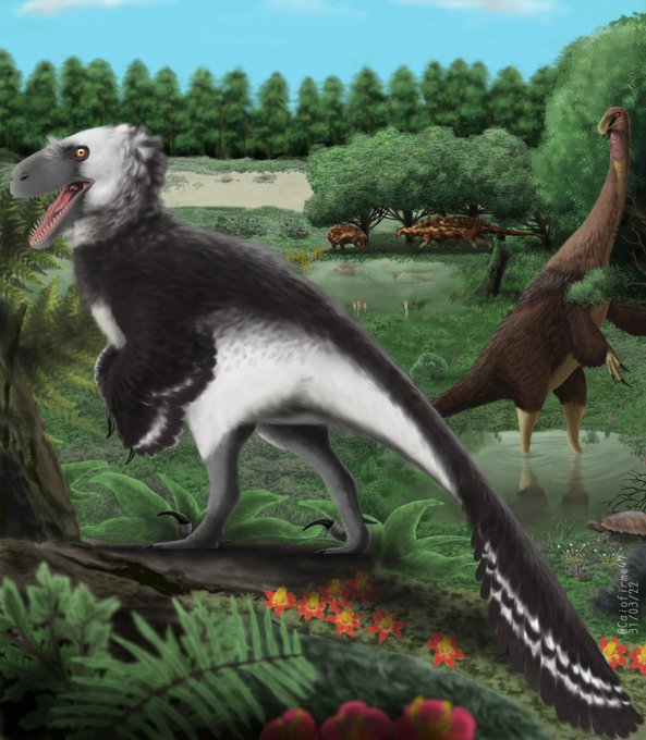 Gastonia burgei, Falcarius and highlight: Utahraptor Ostrommaysi. #Utahraptor #Dromeosaurid #Gastoniaburgei #Gastonia #Falcarius #Paleoart #Paleontology #Digitalart #Dinosaurs #Dinossauros #Cretaceousperiod