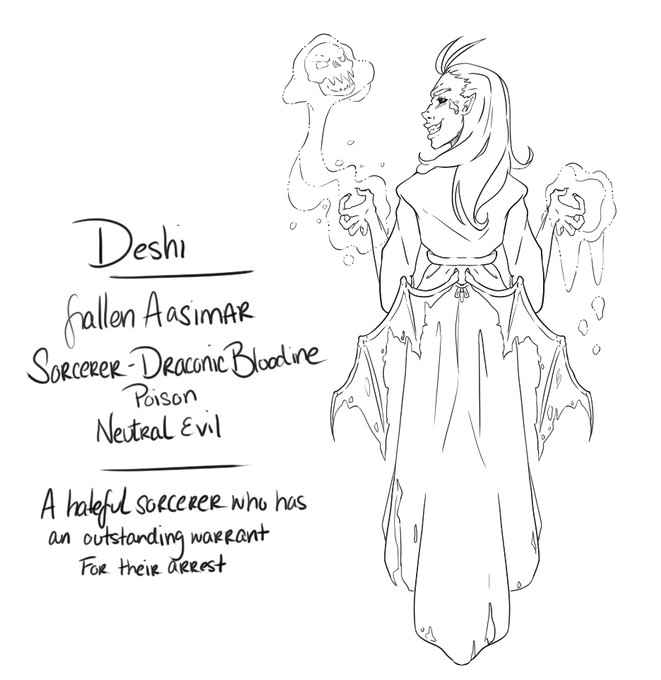 Meet Deshi (they/them) .. .. .. .. #dnd #dungeonsanddragons #Aasimar #fallenangel #sorcerer #inktober #inktober2021