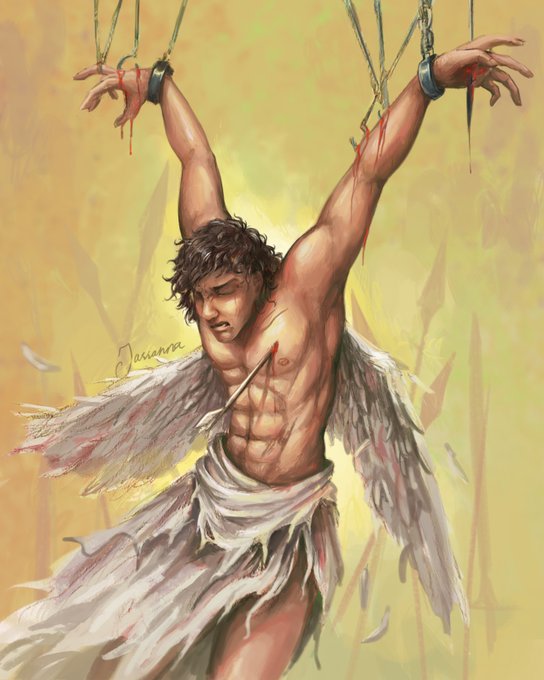 -Fallen angel- you might think this is different from my usual art and you'd be right! There's just something about Angels or other strong figures being defeated and helpless that's very fascinating in art. #fallenangel #painting #artistsontwitter #art #illustration #angel