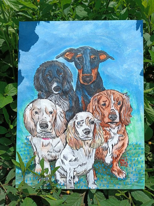 Un pedido especial, una familia perruna 🐕🦮 . . #art #arte #doglover #dog #ilustración #illustration #familia #dogfamily #painting #paint #draw #drawing #ink #inking #inktober #inktober2022 #nest #handdrawn #handpaint #canvaspainting #canvasart #knifuruart #knifuru #anime #manga