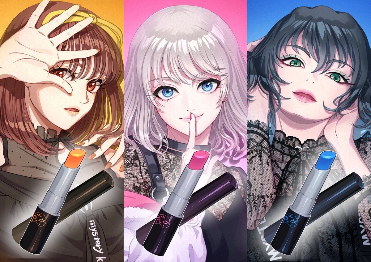 【⚠️ファンアート fanart⚠️】 ″女の子には、秘密があるのーー…。″ ミステリーキッス プロデュースコスメ マスク・ド・ルージュ 登場! 二階堂ルイモデル、市村しほモデル、三矢ユキモデル の3種が、5月13日から発売予定💕 #oddtaxi #fanart #fanfiction