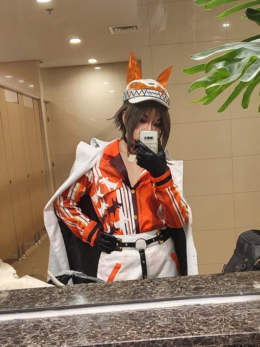 Changed my DP here after so long! Bathroom selfie @Mysta_Rias for now, I really enjoy going as him to events 🦊🧡 #FanFes content coming up! 🔎 #MystaRias #Luxiem #Nijisanji #NijisanjiEN #FanFes2022 #cosplay