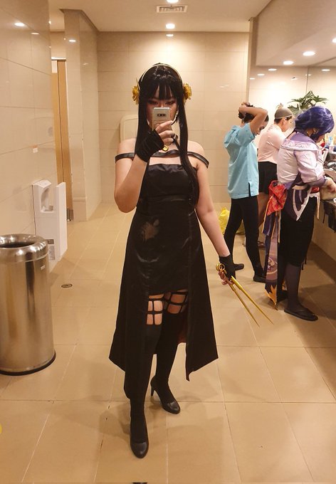 #FanFes thread! 🌟 Went as Yor Forger on day 1, and I was a woman on a mission: Must take photos with all the #SPYxFAMILY cosplays I see! 😤 (Found the first Anya when we were getting ready in the restroom!) #YorForger #AnyaForger #FanFes2022 #cosplay